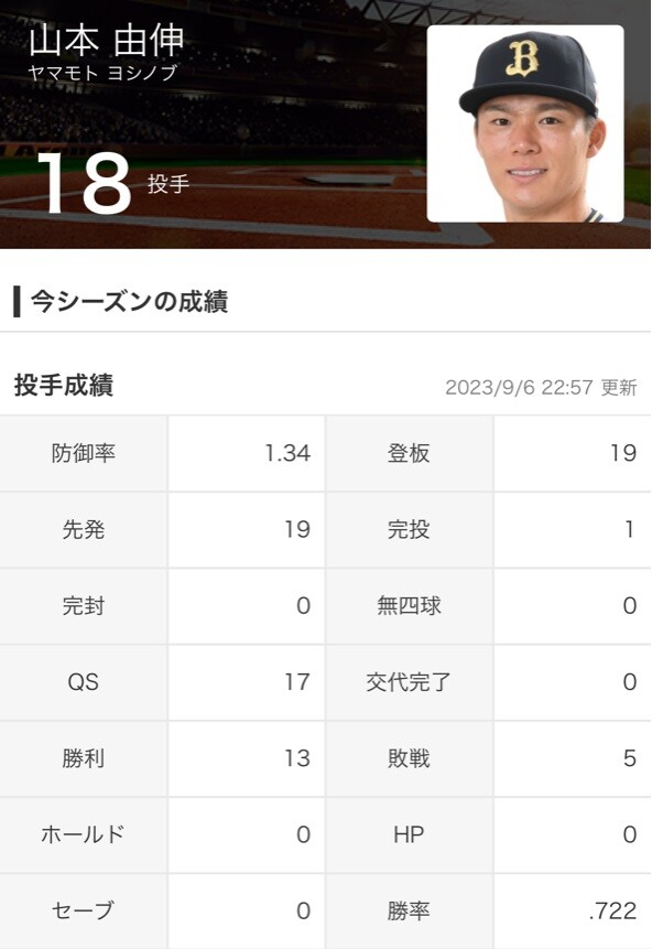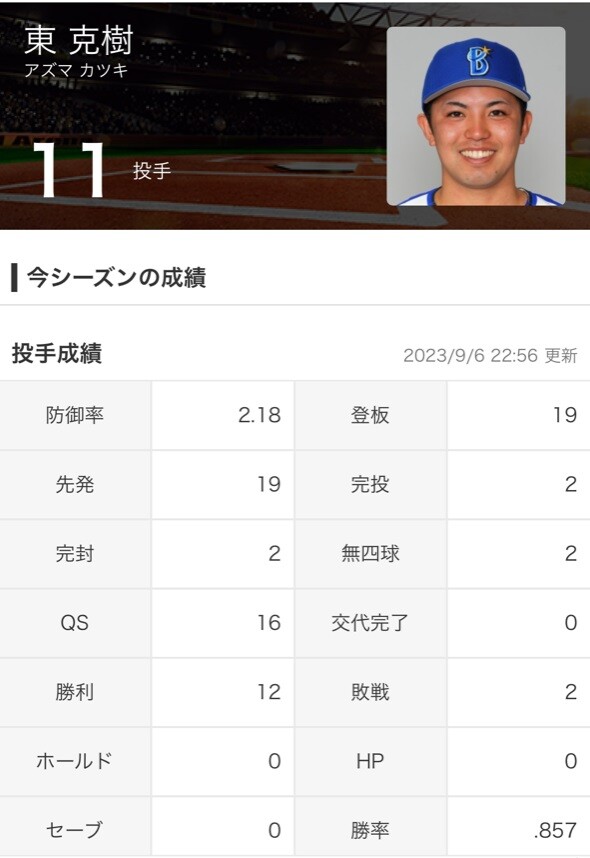 勝率タイトルの規定もクリア、防御率と合わせて投手主要3部門でタイトルを視野に入れた。