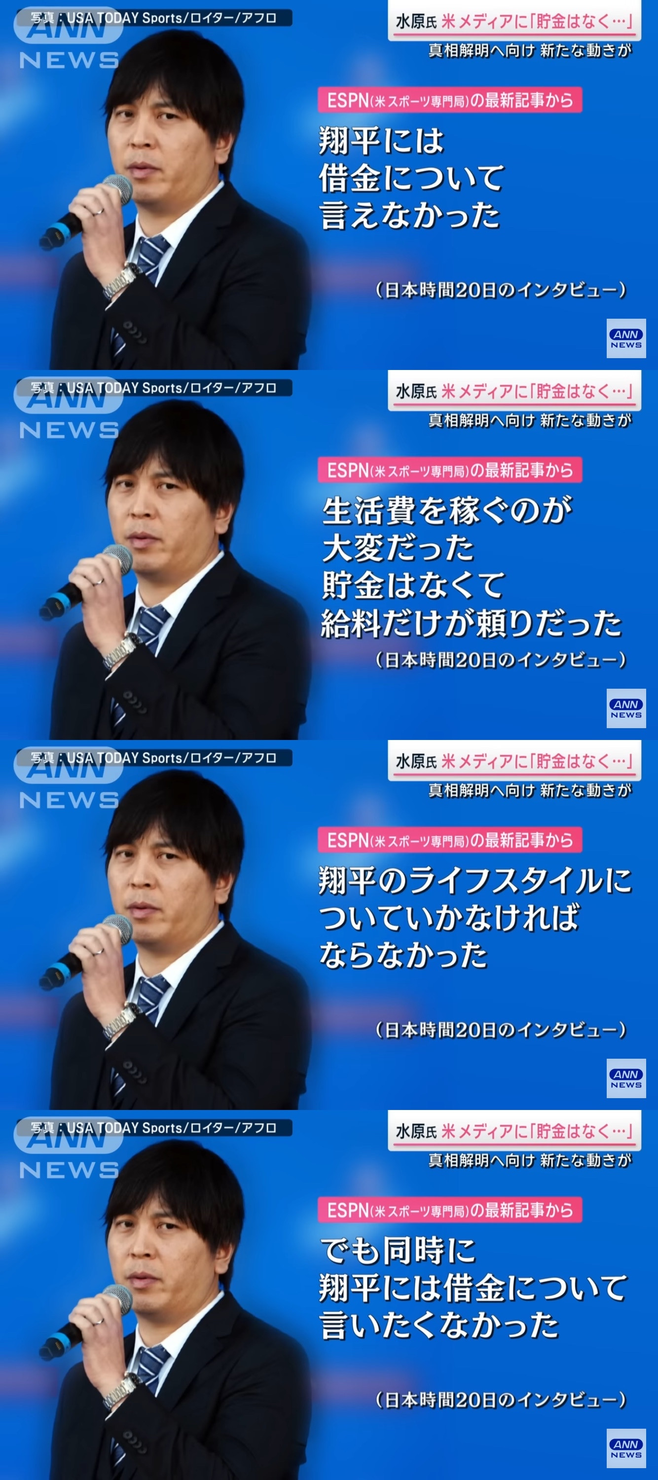 「ずっと負け続けた。雪だるま式だった」ともESPNに語った水原氏。借金は、給料では全く追い付かない額に膨らんでいったようだ。