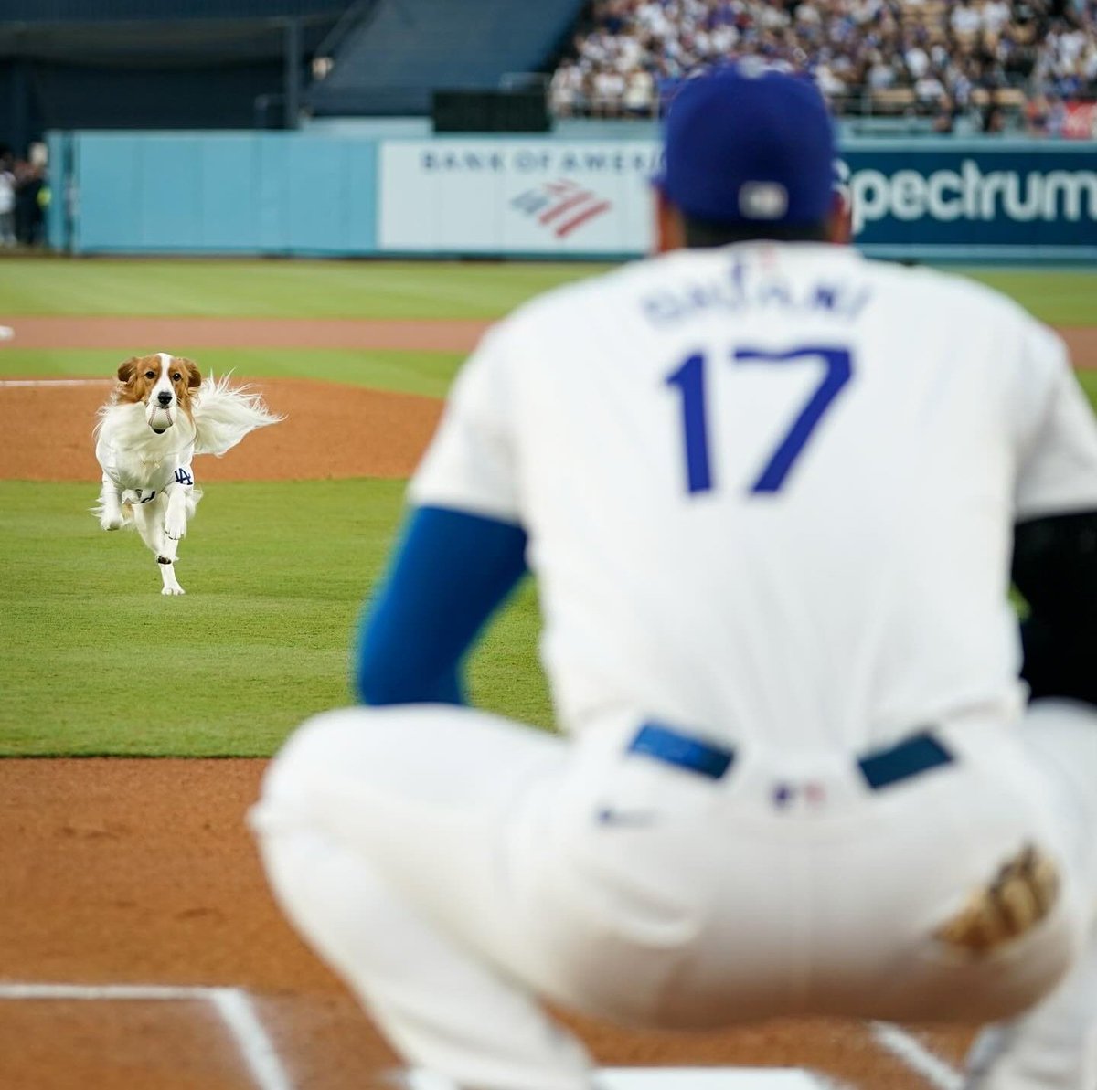 試合後に大谷は始球式について「打席よりも緊張しました」と表情を緩め「素晴らしかったですね」とデコピンを絶賛。準備期間は「2、3週間」だったいい、本番を想定して「1回ここにも来て予習をしました」という。それでもこの日は5万人を超える大観衆の中での大役。大谷は「いいおやつでも買ってあげたいなと思います」とごほうびを用意するつもりのようだ。