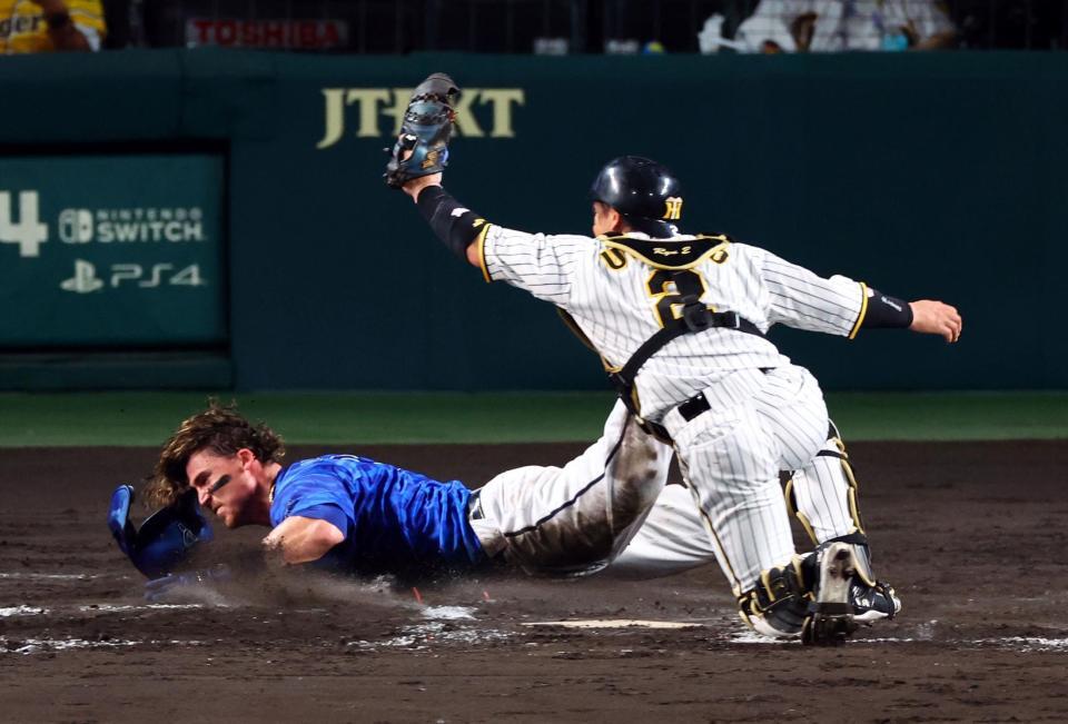 オースティンは七回無死二、三塁で宮崎の右飛で三塁からタッチアップ。本塁ヘッドスライディングしたが憤死した。