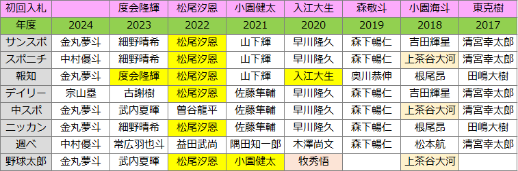 また、先発陣の補強も急務なことから、即戦力投手を重点的に指名する方針が予想される。くじ引きは、1年前に3球団競合の末に度会を引き当てた、三浦監督の“ゴッドハンド”に託す。