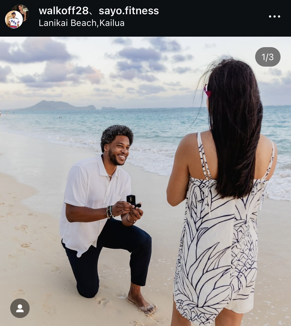 ハワイ・オアフ島のビーチで、ガールフレンドの前にひざまずき、指輪を差し出す写真をアップ。「彼女は『YES!』と言った!」とつづり、プロポーズ大成功を公表した。