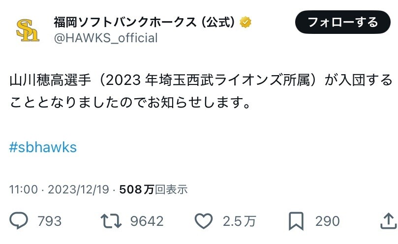 - ホークスでやりたいなら交渉するみたいや受け身なコメントしてたしそもそもウェルカムじゃないんじゃないか