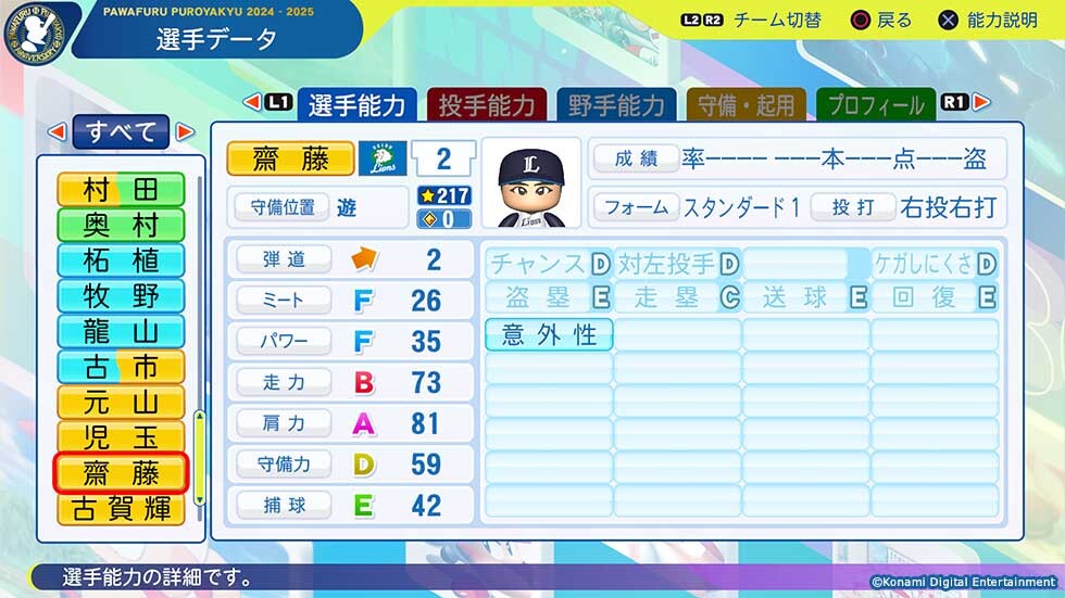 - パワプロはもう能力値見たら満足しちゃう