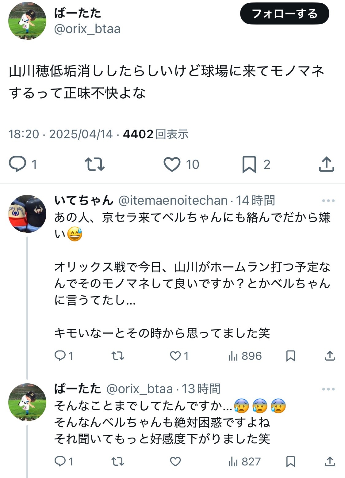 - こいつのせいで山川本人の印象悪くなるやろ