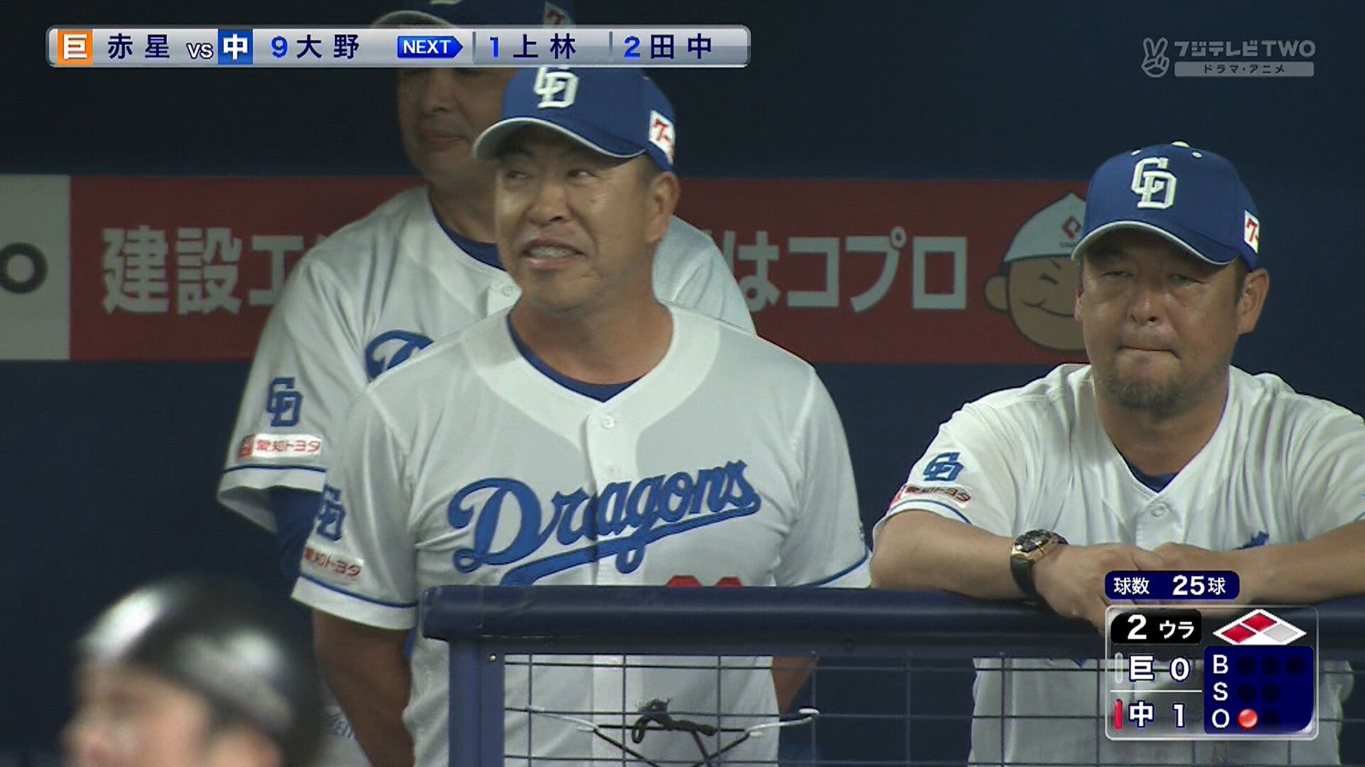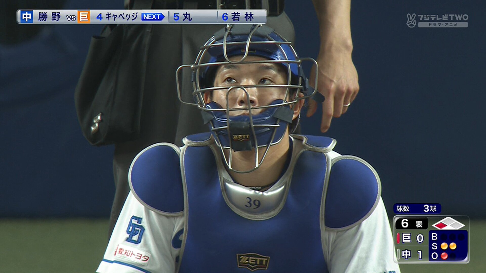 井上監督は頭を抱えていた。勝負を分けた6回1死三塁のピンチ。ベンチは大野から2番手・勝野にスイッチした。打席はキャベッジ。結果は左越えの同点適時二塁打。指揮官の頭には「?」マークがともった。