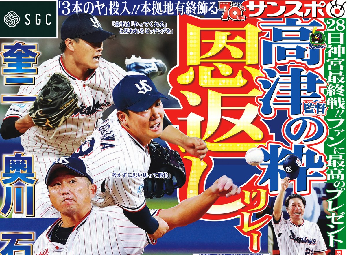 30日は田中将に加え、中6日の戸郷、西舘らが候補となり、慎重に登板を検討していくことになるもようだ。また10月1日の中日とのシーズン最終戦(同)は中4日でエース級の活躍を見せている山崎を投入することもできる。チームの状況次第で複数の選択肢があり、先発は流動的。後のない戦いで、最善を尽くしていく。