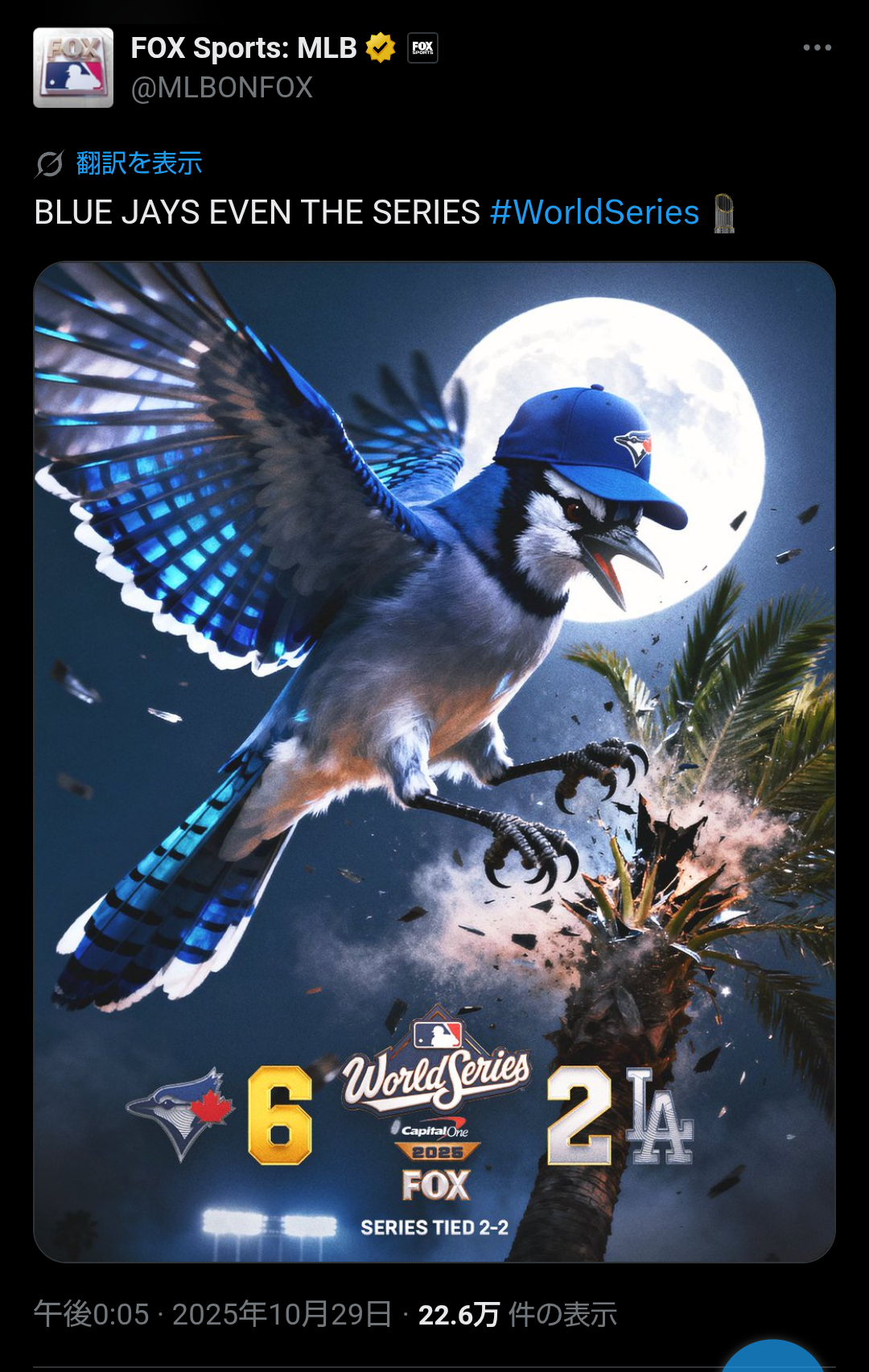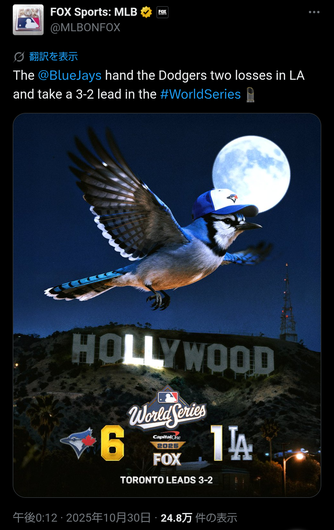 金満ドジャースに連勝でブルージェイズが世界一王手 MLBファン興奮「全米が応援している」=米報道