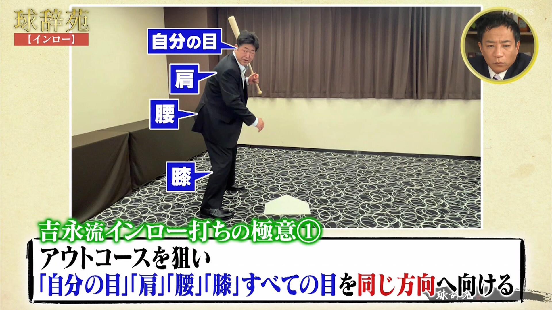 アウトコースを狙い「目・肩・腰・膝」を全て同じ方向に向ければ…