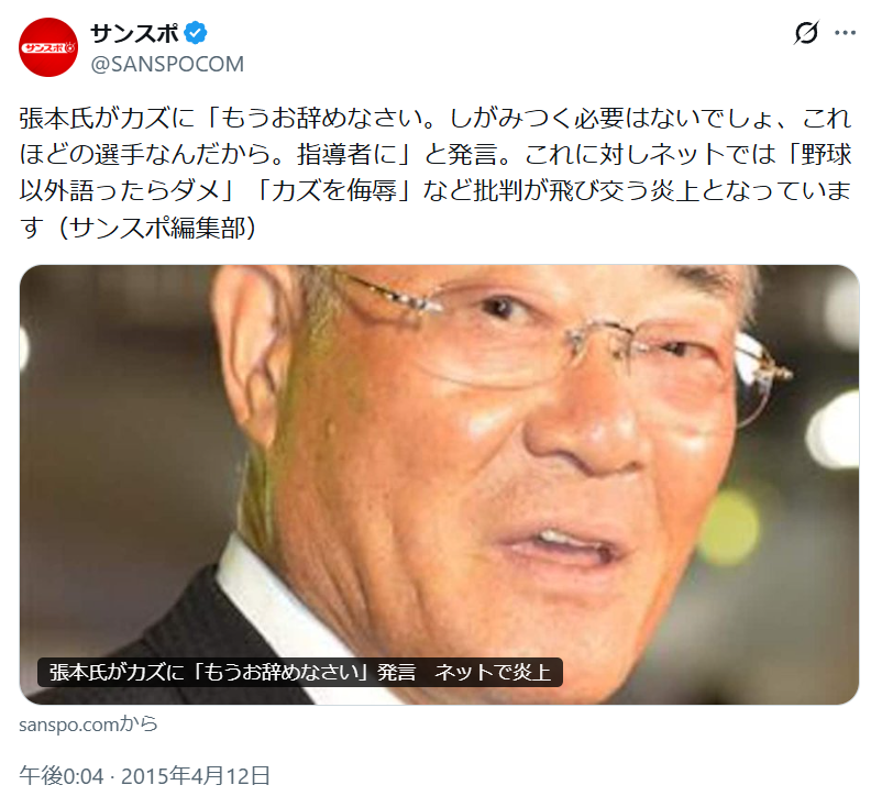 誰も「もう惨めだからやめろよ」とは言えないよな、張本みたいになるんやから