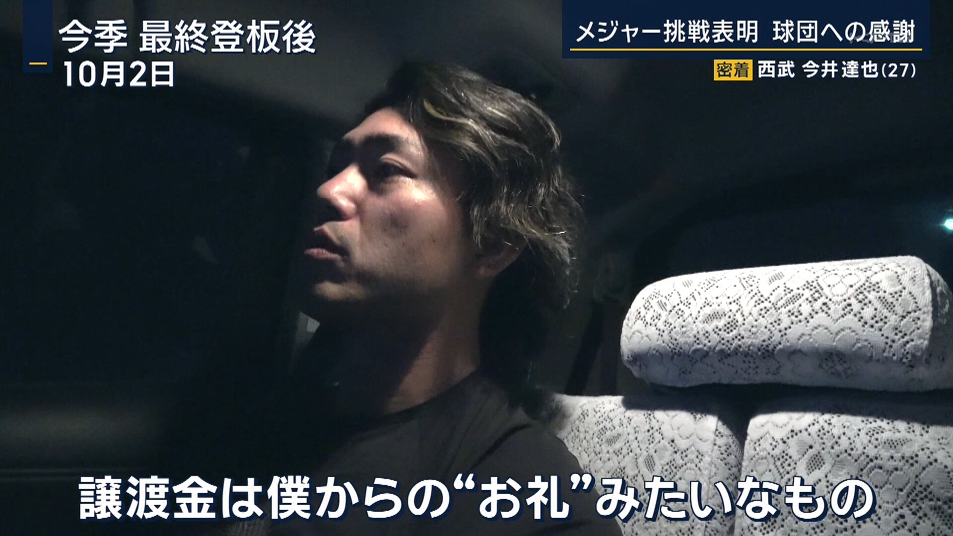 今井の基本契約は3年5400万ドル(約85億円)のため、現時点で西武へ支払われる譲渡金は997万5000ドル(約15億6000万円)とみられる。出来高には15%が加算されるため、最大1132万5000ドル(約18億円)まで増えるが、一方で100イニングの出来高をクリアせず、なおかつ1年目の終了後にFAとなった場合は360万ドル(約5億6000万円)となる。