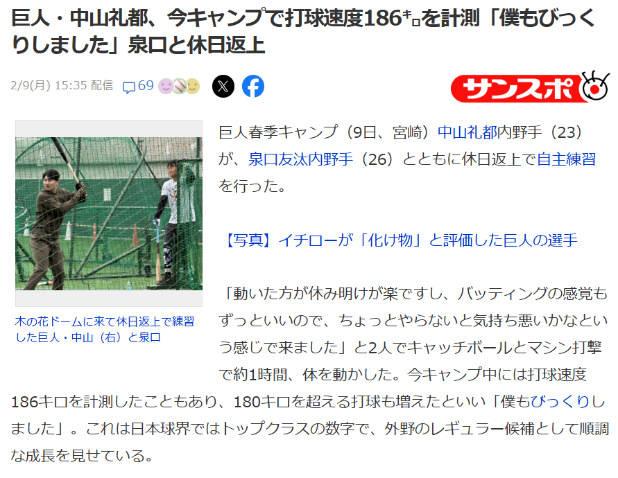 「なかなか柵越えしないな…」。巨人の那覇での第2次キャンプが始まった14日、セルラースタジアム那覇でのフリー打撃を見ながら、そう感じた方もいたのではないか。