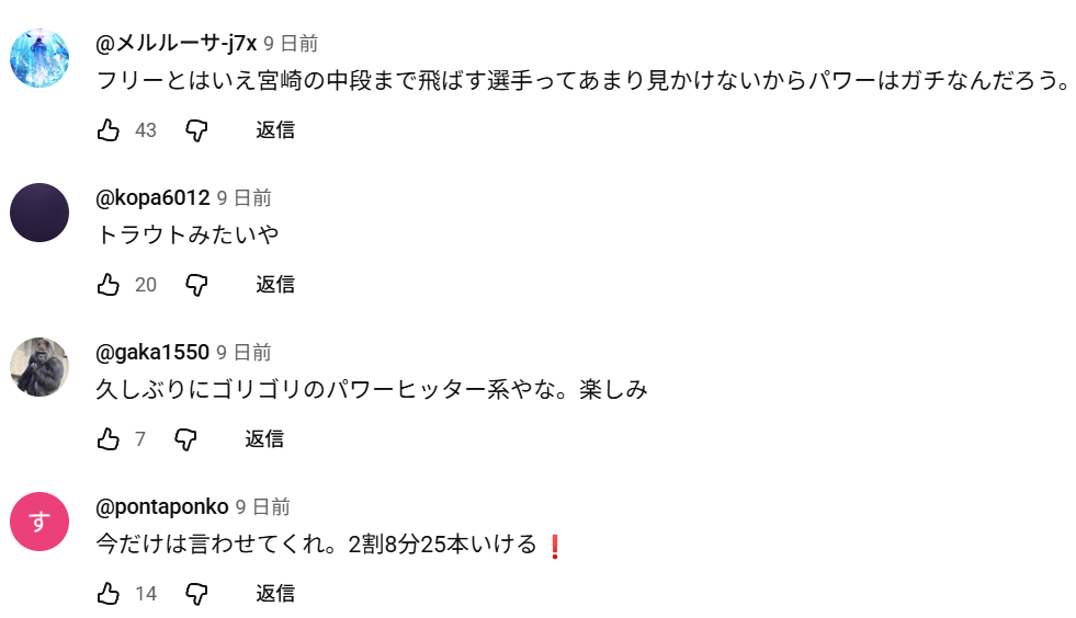 - 中山の打球速度が記録どうこうって見たけどボールの力だったんか