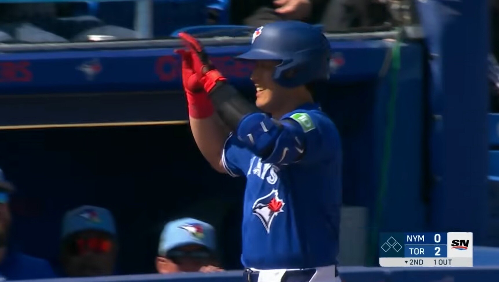 米大リーグは23日、オープン戦がアリゾナ、フロリダ両州で行われ、メッツ戦に6番三塁で先発したブルージェイズの岡本は、二回にオープン戦初安打となる先制2ランを放った。