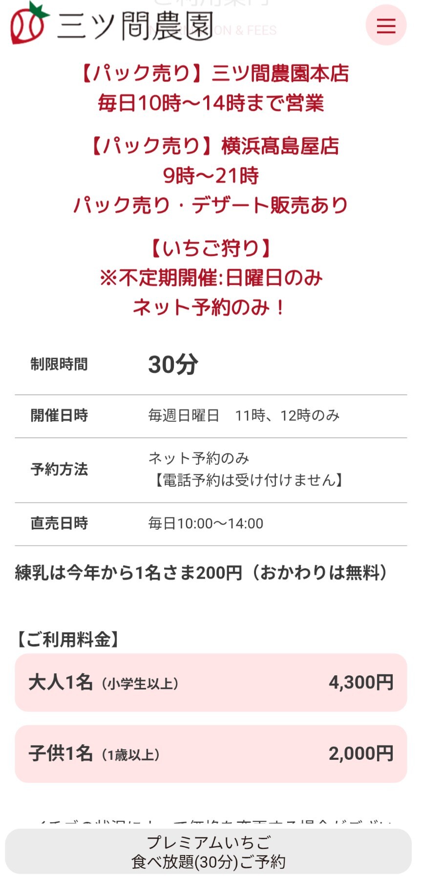 関東のいちご狩り相場ってこんなもんなのか