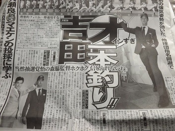 10月16日、ほっともっとフィールド神戸。瀬戸山球団本部長、加藤編成部長らが集まり編成会議が行われた。大方の予想ではドラフト1位候補は大商大・岡田、駒大・今永、明大・上原らが有力とされていたが、瀬戸山球団本部長は「うちは攻撃力が弱い。春先から即戦力野手を取りたいと考えていた。4番を打てる打者が欲しい」と明言。名前こそ挙げなかったが、頭の中に描いている選手は青学大・吉田だった。