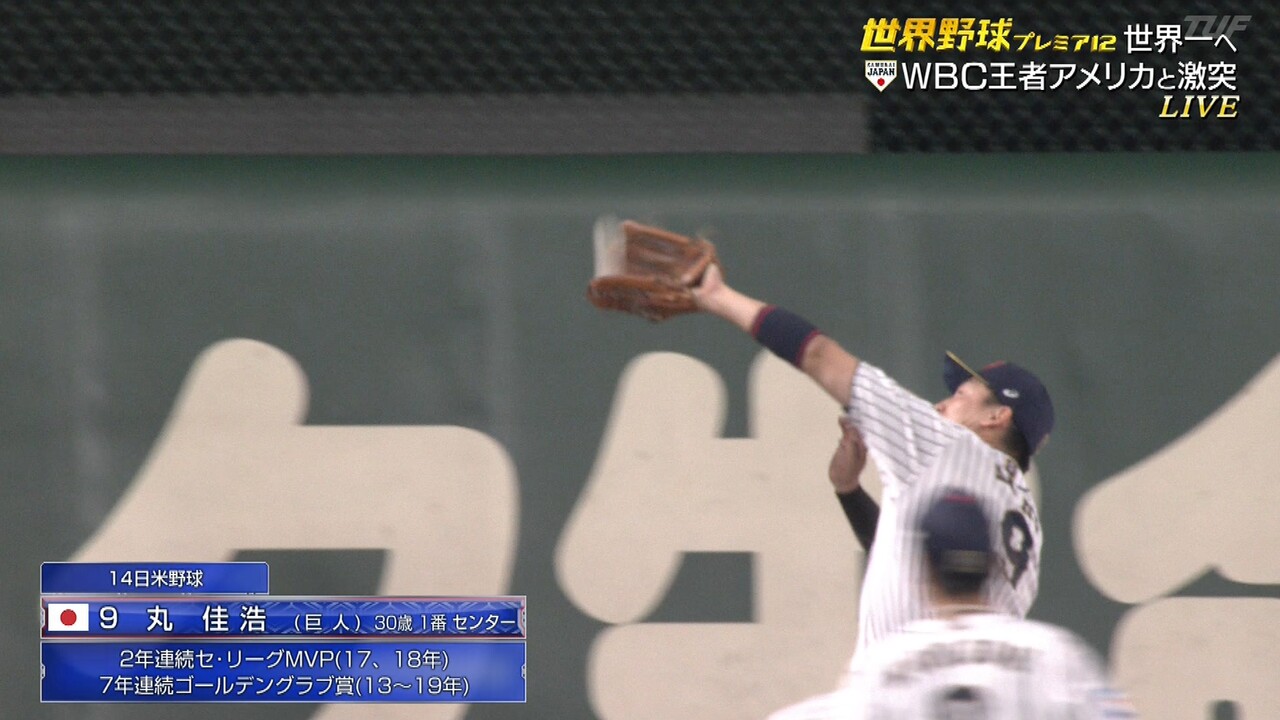 打撃不振の丸、長打性の打球をスーパーキャッチ!