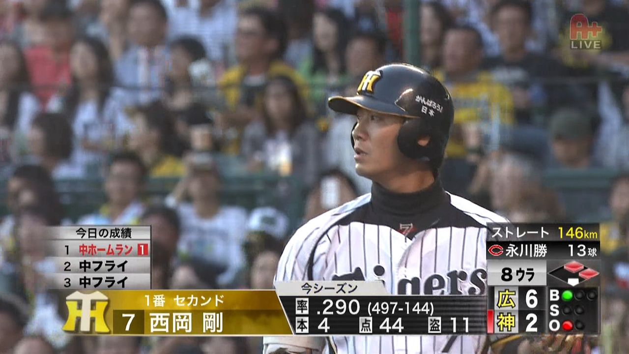 実況「さらにランナーが2塁1塁1アウトでバッター1番の西岡」