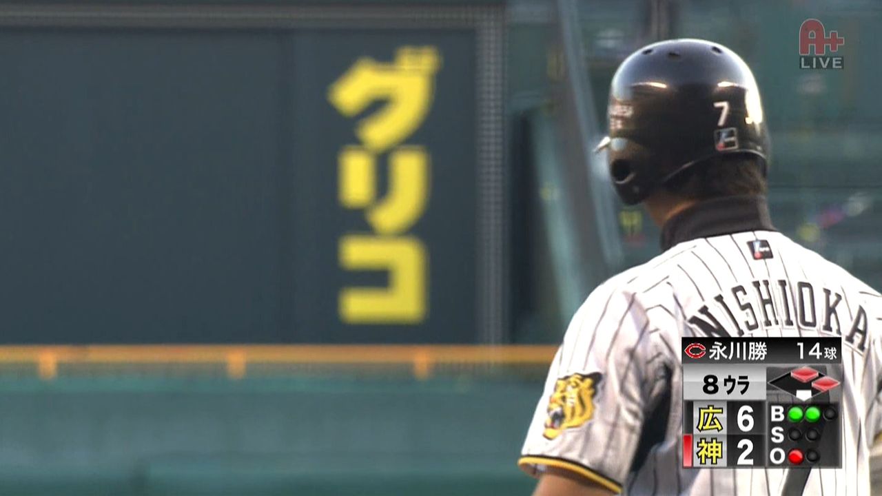 「2回以降沈黙していた打線が8回、目を覚ましました。先頭打者アーチの西岡、これ以上ないチャンスに登場です」