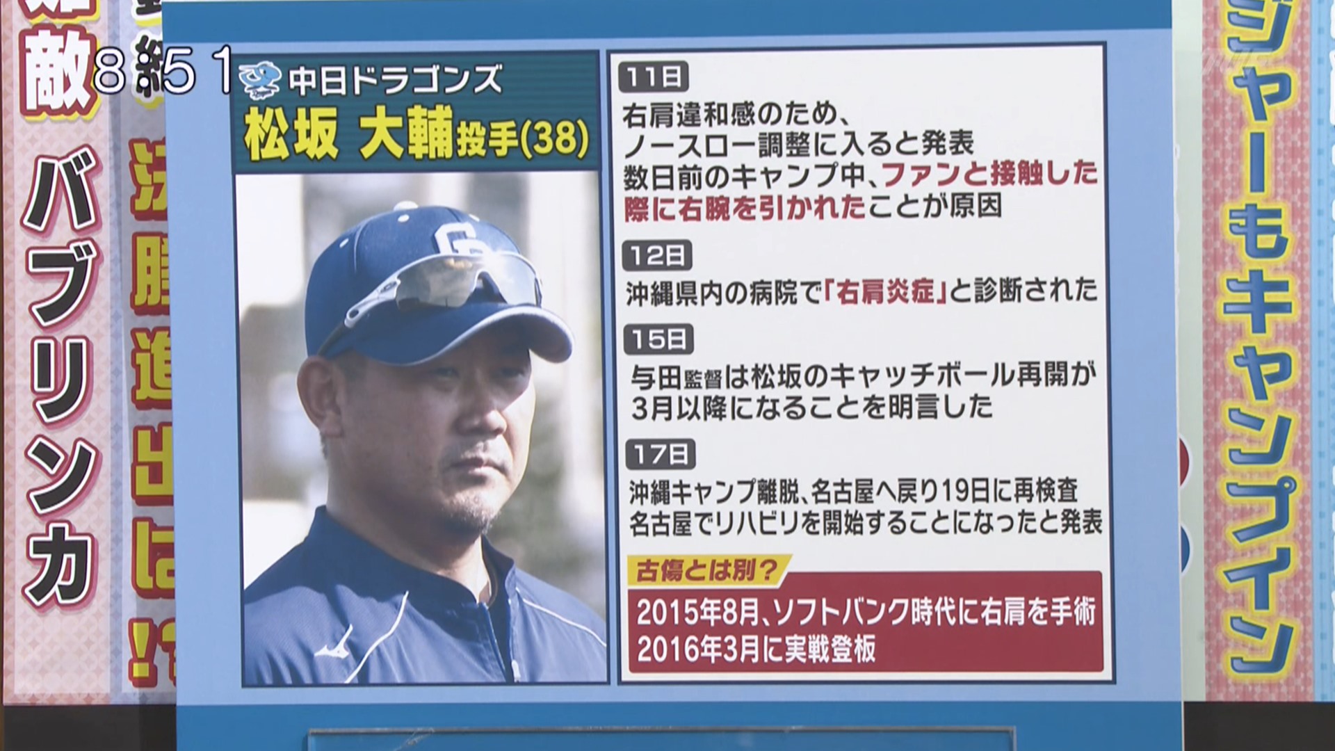 張本氏は「もともと悪かったんじゃないの?松坂は。その時グッと引っ張られて、その悪さが出たんじゃないかと思うんですよ。握手とかね、引っ張られたぐらいでは悪くならないですよ。また、なるようじゃダメでしょう」と、厳しい見解を披露した。