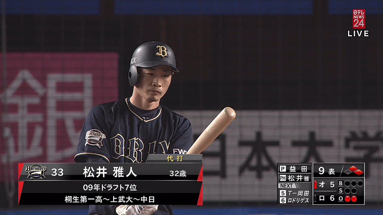 オリックス・松井雅が出血性胃炎 前夜から体調不良…1日西武戦はベンチ外