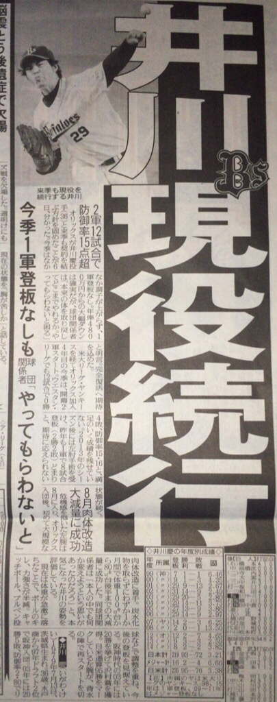元阪神、元ヤンキースのオリックス井川慶投手(36)が復活の1軍昇格をアピールした。