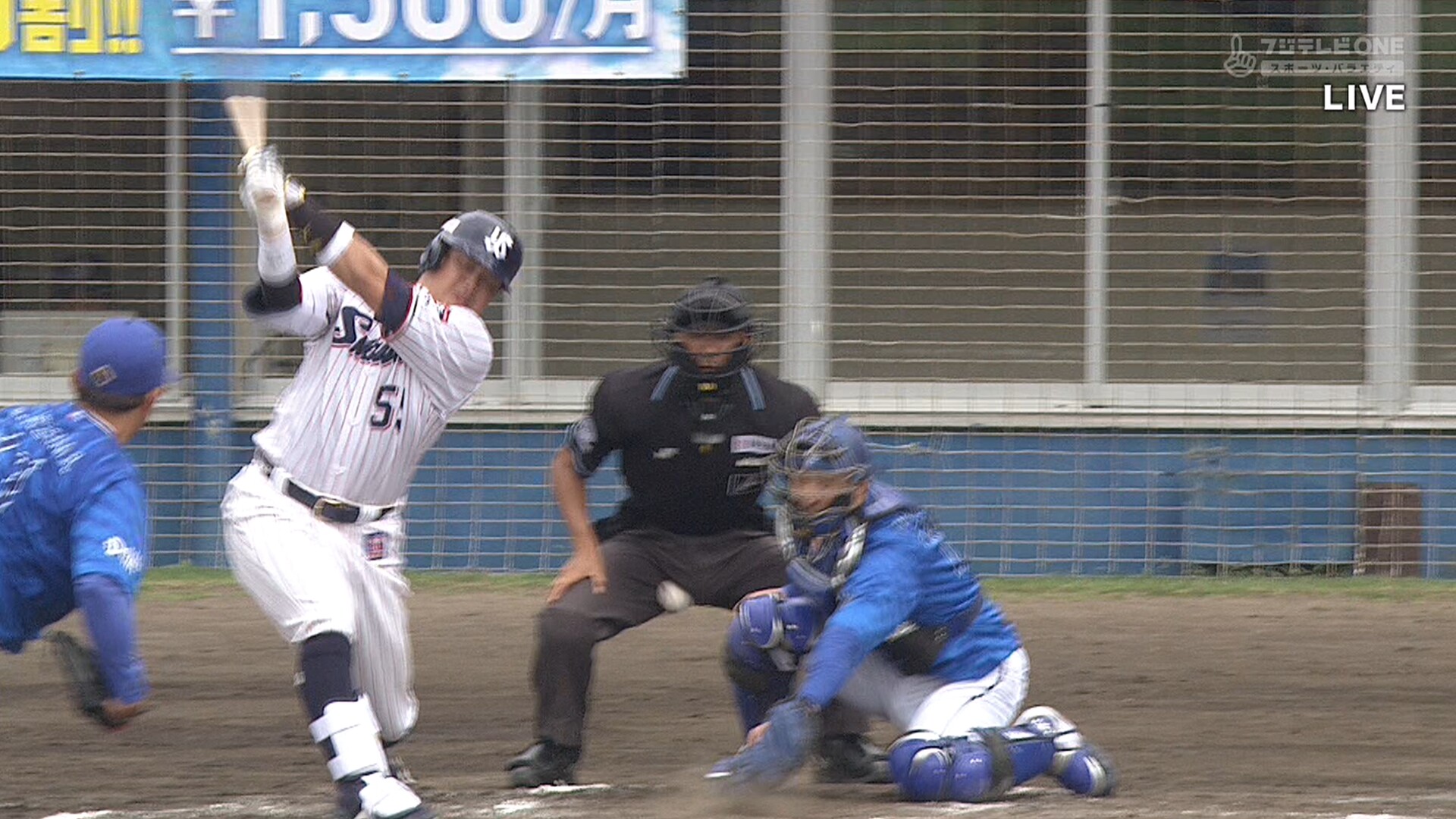 白井球審の急所にファールボールが直撃するアクシンデント!!! 山川&近藤爆笑